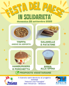 Il Direttivo ha stabilito che l’utile derivato dallo stand gastronomico sarà devoluto al progetto che, lo ricordiamo, aiuta le famiglie di Binasco che vivono in difficoltà, fornendo aiuti concreti.