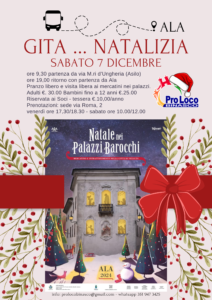 in tanti ci chiedete la gita ai mercatini di Natale e quest’anno vi proponiamo una meta particolare, cercando tra i mercatini di Natale, abbiamo trovato questa proposta che ci è sembrata interessante: la città di Ala (in provincia di Trento) soprannominata la “città di velluto” ospita i mercatini di Natale all’interno delle corti dei suoi bellissimi palazzi barocchi.